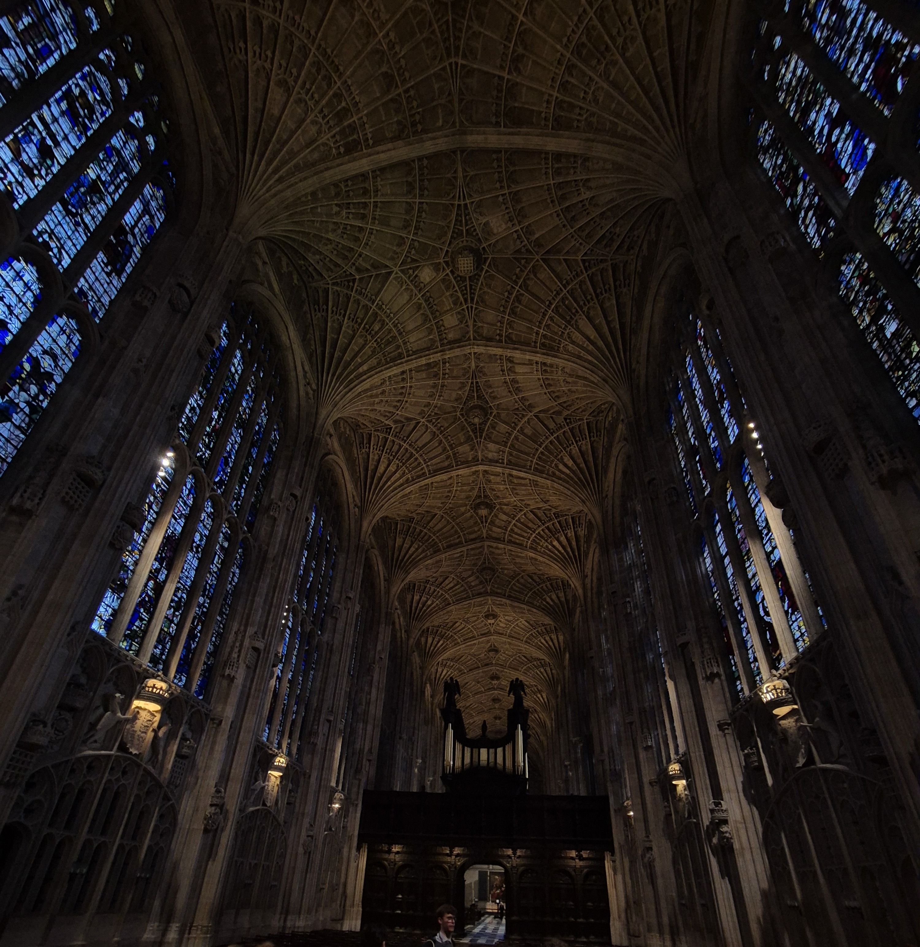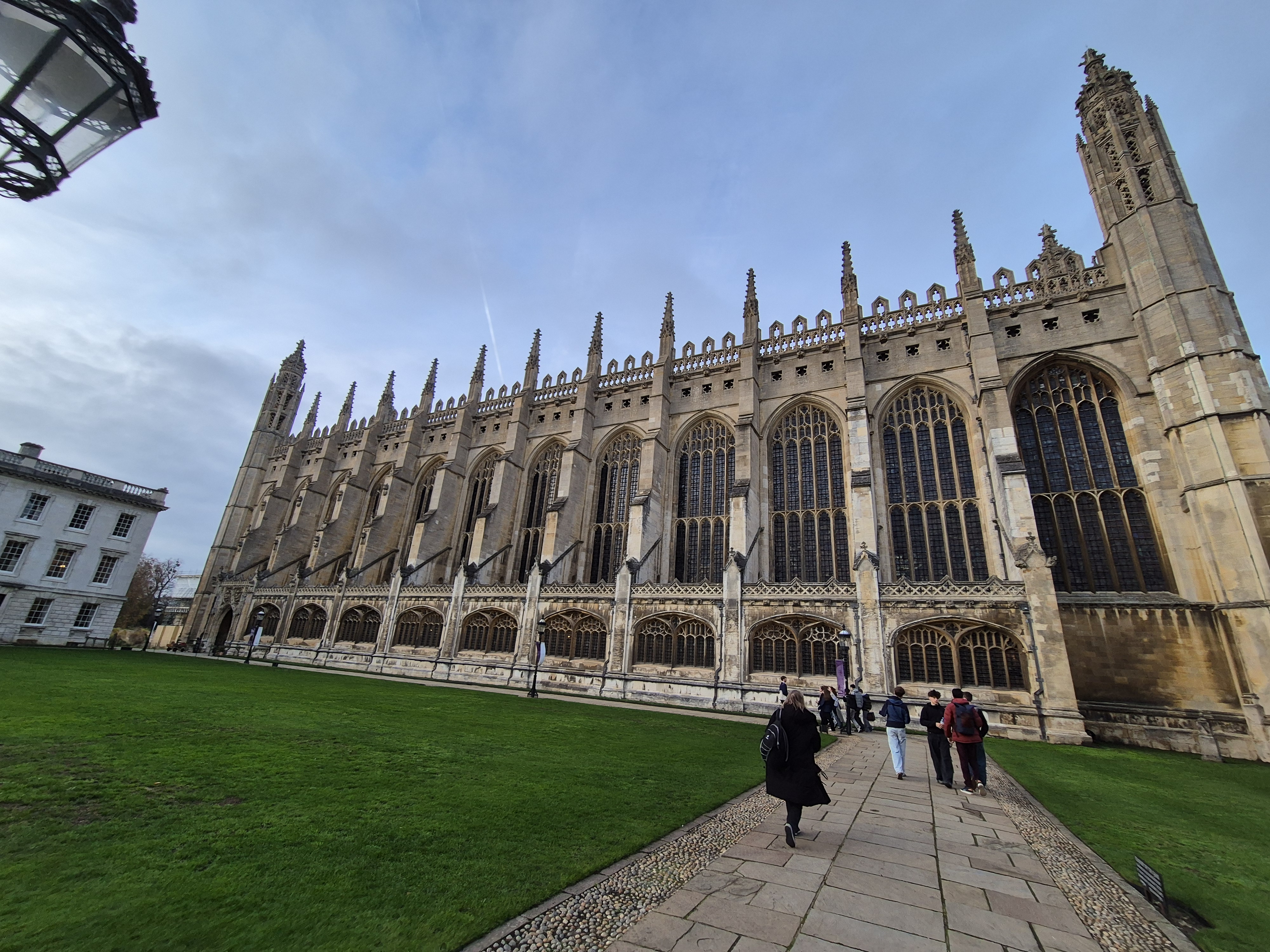 By then, it was noon, and on the drive into Cambridge, each student ate the packed lunch prepared by their host families. After the short drive, we had free time to look around the city center. The main attractions were the beautiful King's College Chapel and the Harry Potter shops that could be found everywhere. After we were divided into small groups, each group was assigned a guide. At 2 p.m., we were given a guided tour of the city and learned a lot about the history of Cambridge. We were even introduced to the famous Newton apple tree. After that, each student had a choice: choir rehearsal with the Kings College choir in the chapel or free time. The choir rehearsal was led by Mr. Pickert, our former language assistant, who invited us privately to listen to the choir, where he also sings. The interior of the chapel was majestic, and being able to sing there would be a dream come true for any choir member. It was a truly breathtaking experience, and we were very grateful that we were allowed to listen. As it was now 6 p.m. and dark, we drove back to Gillingham, where our host families were already waiting for us.