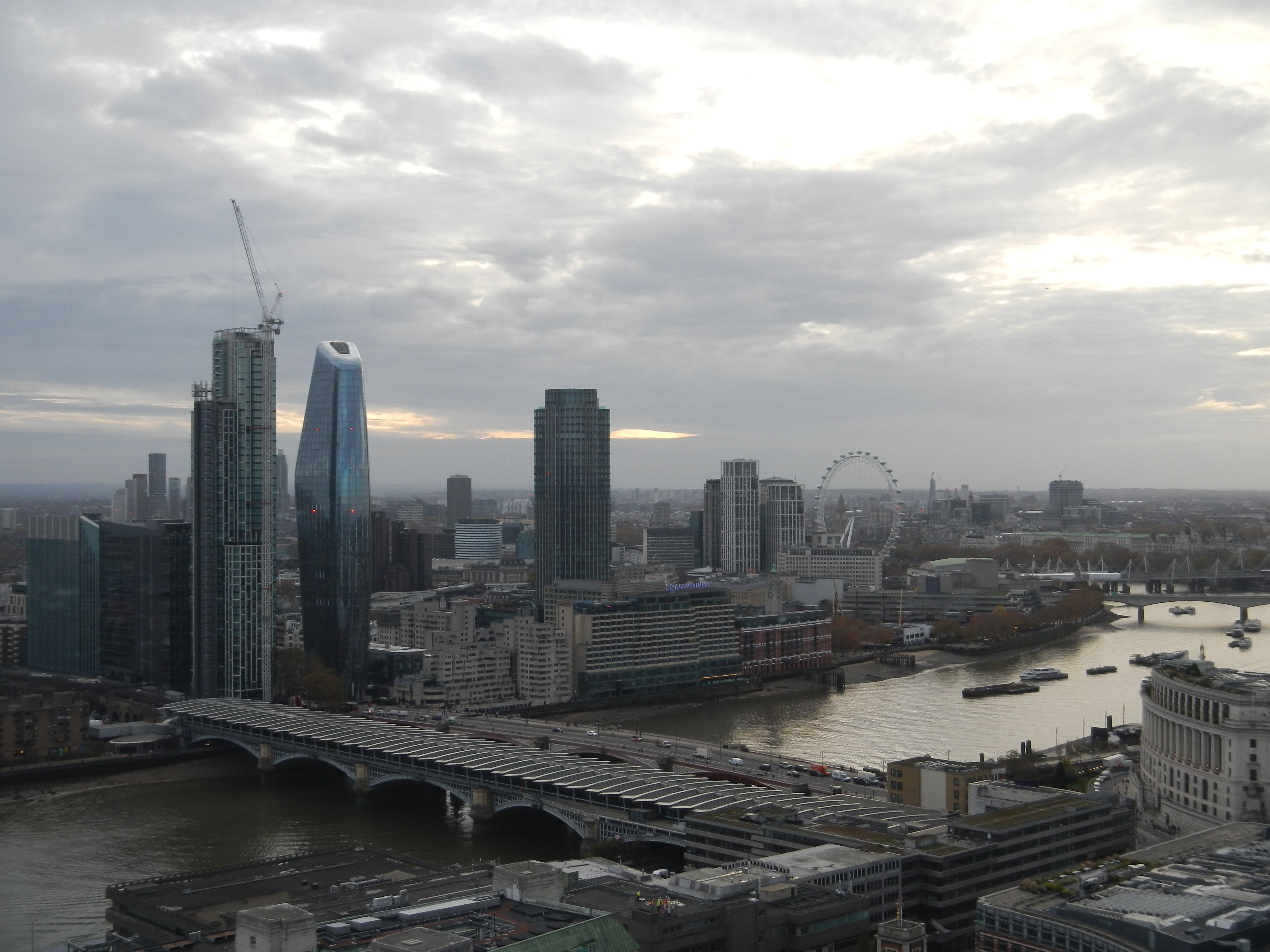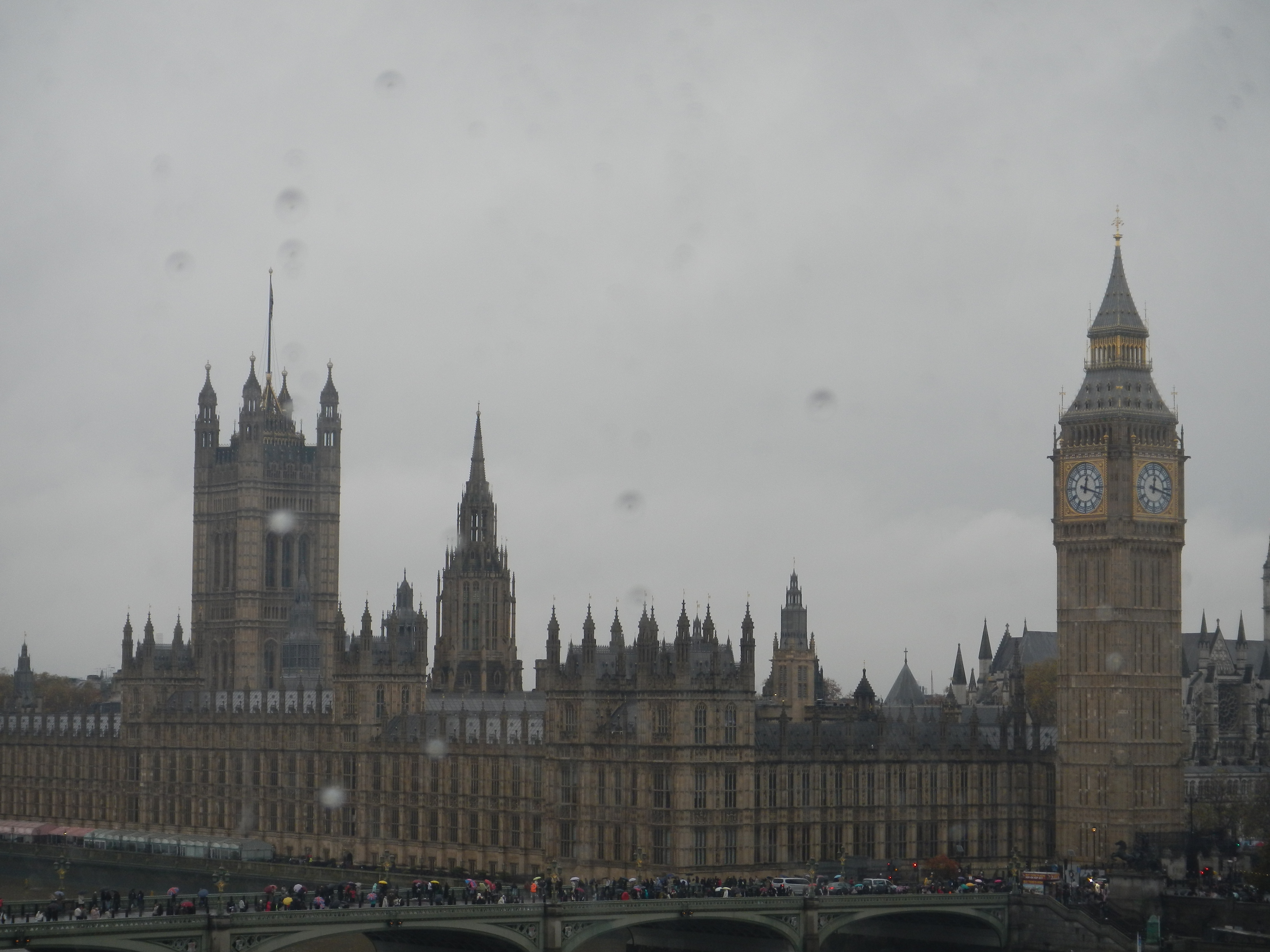 In London versucht sich unser gewaltige Tross durch den Nieselregen zur St. Pauls Cathredal zu schieben. Er wird mehrfach von der Ampelschaltung boykottiert. Danach noch London Eye. Nach Ewigkeiten des Wartens überrascht uns auf dem Riesenrad eine unerwartet klare Sicht über Themse und die Sehenswürdigkeiten der Stadt.