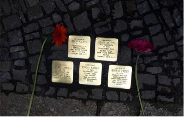 Stolpersteine, die dank der Geldprämie aus der Teilnahme am Wettbewerb 2019 durch den Grundkurs 11 verlegt werden konnten.