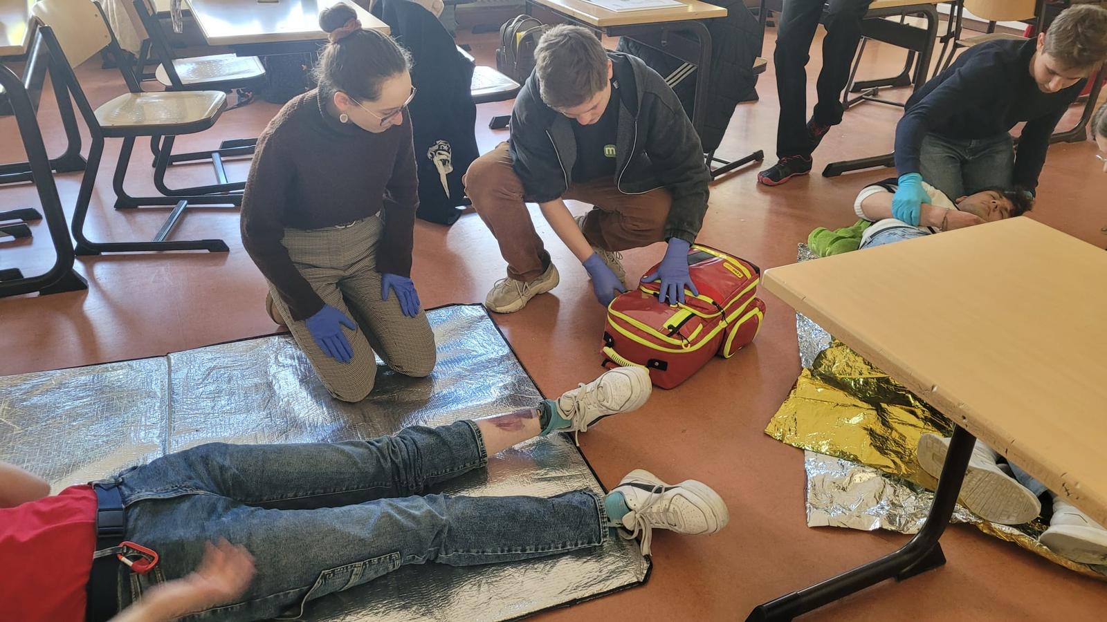 Aktiv als Schulsanitäterin oder Schülersanitäter kann man allerdings erst ab der 7. Klasse agieren. Nach einer extra Trainingswoche mit anschließender Prüfung in den Herbstferien, ist der Schulsanitätsdienst aktiv an unserer Schule.