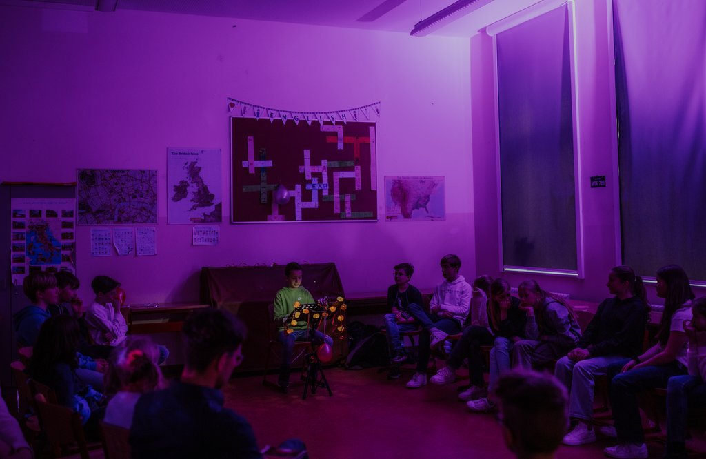 Den Abschluss des Abends machte ein improvisiertes Theaterstück unserer eigenen Theater-AG. Das Publikum wurde eingebunden und konnte so das Theaterstück selbst mit leiten. So wurde es zu einem lustigen Schauspiel. Auch die Lehrerinnen und Lehrer lasen an diesem Abend einige ausgewählte Texte szenisch vor, auch das war ein schöner Anblick.