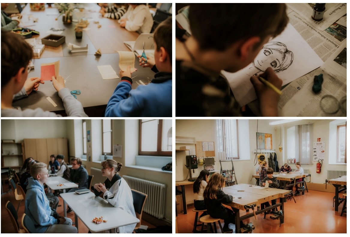 Nach der großen Resonanz, auf die die Premiere des Lesefestes im vergangenen Schuljahr stieß, gab es am 20.März 2024 eine Wiederholung. Bewährtes und Neues rund um das geschriebene, gesprochene und gestaltete Wort lockte Interessierte aus der Schulgemeinschaft am Nachmittag in die Schule. Mit einem höchst unterhaltsamen Auszug aus dem Roman „Die schlimmsten Kinder der Welt“ gestaltete Ronja Frenzel, die Schulsiegerin im Vorlesewettbewerb des Börsenvereins des Deutschen Buchhandels für die 6.Klassen, einen rasanten Auftakt. Dank des frischen Kaffees aus der „Elstermühle“ und eines Kuchenbuffets der 12. Klasse blieb das Lesecafé im Foyer ein Hotspot während des gesamten Festes und lud in den Pausen zum Verweilen ein. Zeitgleich mit der Eröffnung der Leipziger Buchmesse erlebten die Gäste unseres Lesefestes eine Reihe von Autorinnen und Autoren, mehr als im vergangenen Jahr: Johannes Herwig, der seinen letzten Roman „Halber Löwe“ mitgebracht hatte, Katharina Bendixen mit ihrem Roman „Taras Augen“ und Judith Burger, die für Schülerinnen und Schüler der 5. – 7. Klasse aus „Gertrude grenzenlos“ las. Interaktiv und jahrgangsübergreifend kam Christina Röckl zu Text und Illustrationen der Parabel „Ar – Ar und Bobo“ mit den Besuchern ins Gespräch. Der Journalist Florian Sturm stellte mit seinem Buch „Ein Leben für den Ozean“ einen faszinierenden Lebensraum vor und vor allem auch Menschen, die alles für dessen Schutz tun. Zum Bewährten gehörten Lesungen fremdsprachiger Literatur in Englisch, Französisch, Italienisch, Finnisch und Klingonisch! Großen Zulauf erlebten die Angebote, die den Schülerinnen und Schülern die Möglichkeit boten, selbst tätig zu werden: beim Buchbinden, Gestalten von Objekten aus alten Buchseiten, beim Escape Game zu „Der Herr der Diebe“, beim Gestalten von Entwürfen im Bereich Comic und Manga oder beim Aufdecken von Fälschungen in einer mittelalterlichen Urkunde. Lebensfragen aus der Sicht antiker Philosophen konnten mit Experten und Expertinnen der 11. und 12.Klasse erörtert werden und wie auch im vergangenen Jahr konnten Greta Taubert und Christian Fuchs den Zuhörenden mit Ergebnissen ihrer investigativen journalistischen Arbeit die Augen öffnen. Wer auf der Suche nach einer möglichen beruflichen Perspektive ist, bekam Anregungen in Präsentation und Gespräch mit Tabea Petry, die als Absolventin der Thomasschule inzwischen studiert und sich bereits jetzt als kompetente Fachfrau in Sachen Buchrestauration auswies. Wie man Journalist wird, konnten Interessierte von Johanna Kelch erfahren. Auch wenn wir uns insgesamt mehr Besucher gewünscht hätten, erlebten wir an diesem Nachmittag wieder viel Anregung und ein lebendiges Miteinander. Ein Dank an alle, die mit ihrer Begeisterung, ihren Ideen und ihrem Engagement dieses Lesefest möglich gemacht haben.