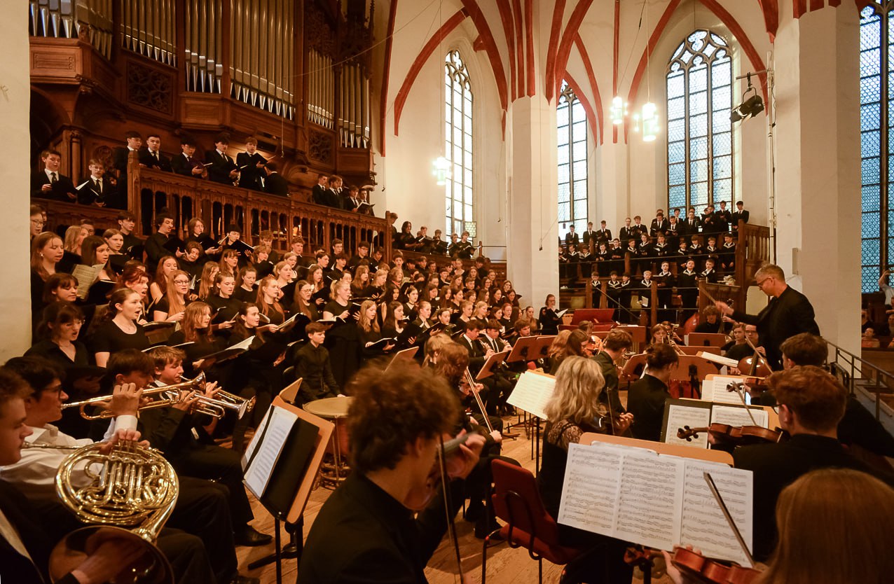Knapp über 300 Schülerinnen und Schüler wirkten in 90 Minuten mit einem sehr abwechslungsreichen Programm allein aber auch gemeinsam. So war es für den kleinen sowie großen ThomasSchulChor, die KammerChöre, das ThomasSchulOrchester aber auch für den Thomanerchor ein besonderer Höhepunkt, zum Finale des Konzertes gemeinsam den Schlusschor des 42. Psalms Felix Mendelssohn-Bartholdys unter der Leitung des Thomaskantors Andreas Reize aufzuführen.